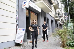 Nadine und ihr Kollege Dustin vom Studio Formwandler Recover, in dem die Kältekammer steht. Foto: Sarah Schaefer