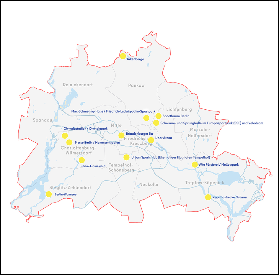 Für die Spiele sollen hauptsächlich bereits bestehende Sportstätten genutzt werden – viele bei uns im Kiez: Jahn-Sportpark, Max-Schmeling-Halle, Schwimm- und Sprunghalle im Europasportpark und Velodrom. Letztere wurden (fun fact) für die dann erfolglose Olympia-Bewerbung 2000 gebaut.