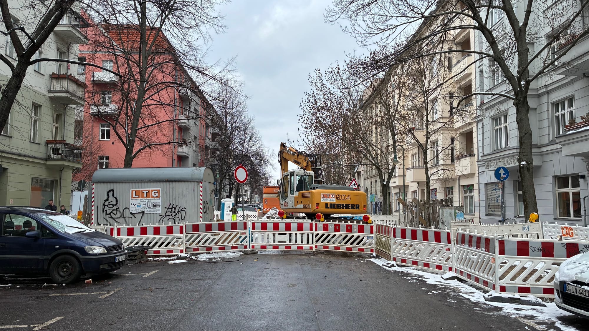 Die Baustelle der Berliner Wasserbetriebe an der Kreuzung Czarnikauer/Schönfließer Straße im Skandinavischen Viertel sollte schon im Oktober Geschichte sein.