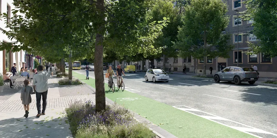 Die Torstraße ist marode und wird für 10,1 Millionen Euro saniert. Es kommen Radstreifen dazu, die zum Teil auf der Straße entlangführen, aber stellenweise auch den Gehweg schmaler machen. Die Autostraße bleibt vierspurig, was Anwohner:innen, Umweltverbände und der rot-grüne Bezirk Mitte kritisieren.